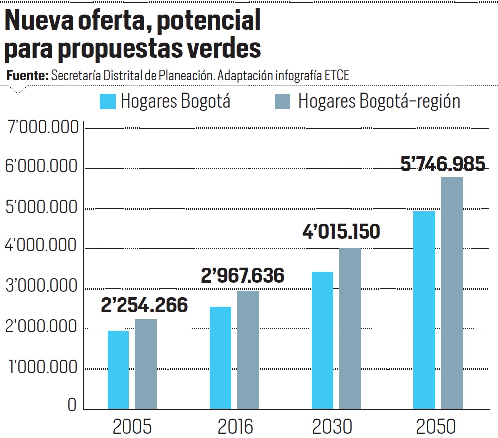 Y el potencial es grande, si se tiene en cuenta que, según la Secretaría Distrital de Planeación (SDP), la ciudad y la región tendrán 1,16 millones de viviendas adicionales en el 2030, mientras que en el 2050 la cantidad ascenderá a 2,89 millones (ver gráfico). El Alcalde Mayor destacó que todo se consolidó, “tras un amplio proceso de participación, el cual permitió concretar un plan de trabajo que involucró, en su formulación, al Gobierno y la sociedad civil, a los proveedores de servicios técnicos y financieros, a los dueños, administradores y ocupantes, y a las empresas de servicios públicos domiciliarios”.