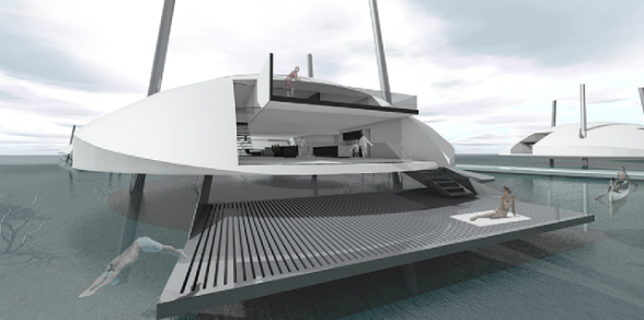 El estudio Terry & Terry Architecture de Estados Unidos presenta en el evento ‘Time Space Existence’, que forma parte de la Bienal, un proyecto de casas construido alrededor de un muelle flotante que conecta la estructura con la orilla del mar.