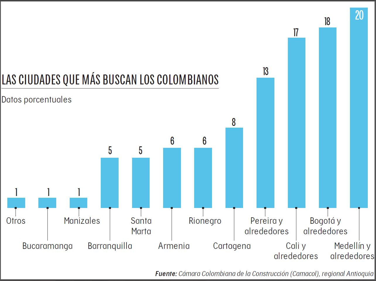 Al evaluar otras cifras del informe revelado por Camacol, 32 por ciento de los encuestados quieren obtener una vivienda para arrendarla. Por su parte, el 24 por ciento la desea para sus familiares en Colombia, mientras que otro 24 por ciento –en línea con la idea del retorno– la quiere para habitarla; incluso, hay un 8 por ciento interesado en hacer la inversión para tener a dónde llegar cuando estén de vacaciones, lo que –de paso– ha impulsado la demanda en Cartagena o el Eje Cafetero.