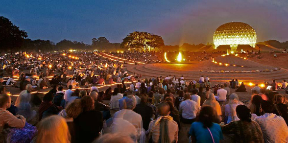 Es un proyecto de ciudad que está en desarrollo y que está concebido para tener una población de 50 mil habitantes de todas las nacionalidades. En la actualidad, Auroville ocupa 2.000 hectáreas en donde habitan 2.500 personas de 50 naciones, más de 1.000 indios, más de 300 franceses, cerca de 200 alemanes, unos 150 italianos y otras nacionalidades incluida la colombiana.