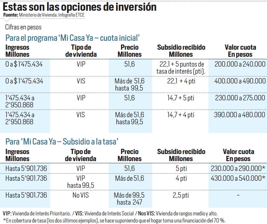 De hecho, según un ejercicio realizado por el Ministerio (ver tabla con los diferentes beneficios), las cuotas con el apoyo de los puntos a la tasa que asume el Gobierno, terminan ajustando a la baja las cuotas mensuales.