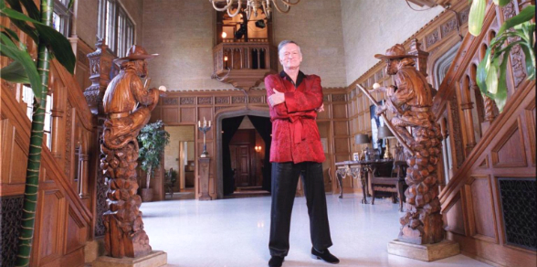 La mansión está a la venta por 200 millones de dólares (unos 661 mil millones de pesos colombianos), tiene cerca de 2.000 metros cuadrados, cuenta con: 22 habitaciones, una sala de teatro, una sala de juegos, un depósito de vinos, jardines, una bodega, zona de piscina incluida la famosa piscina en forma de cueva en donde las conejitas y muchos famosos del mundo celebraban las fiestas, además, la mansión tiene una licencia para albergar un zoológico. (Felicidad y tranquilidad en tres pasos)