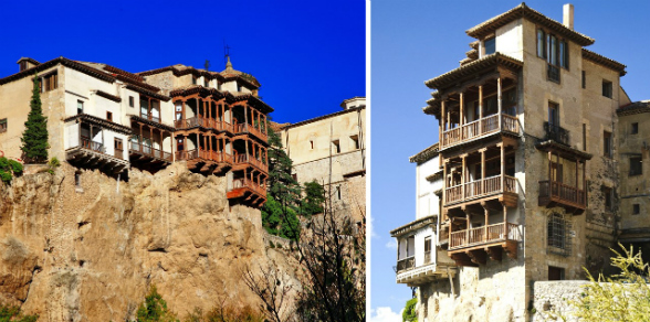 Son llamadas de esta manera puesto que una parte de su construcción se encuentra ubicada en un voladizo o sus grandes balcones sobresalen la cornisa sobre el acantilado del río Huécar.