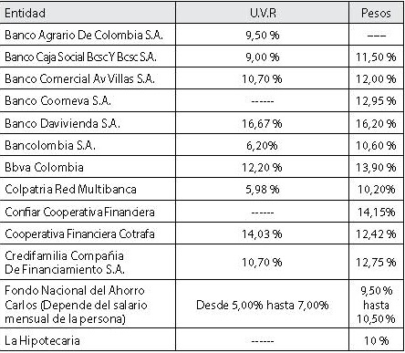 - Los créditos en Unidades de Valor Real (UVR), presentan cuotas variables, siguiendo la UVR certificada por el Banco de la República.