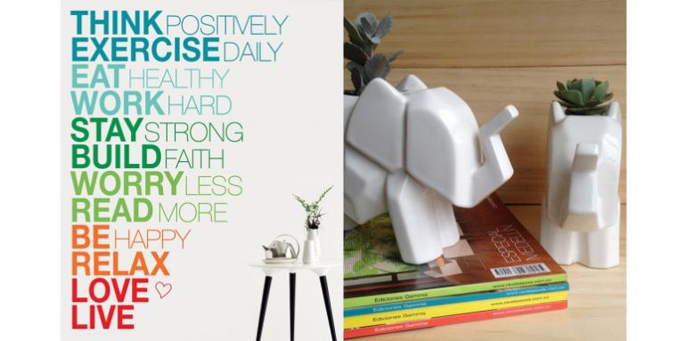 Las paredes totalmente blancas combinan perfectamente con cualquier mueble, sin embargo, si quiere dar un poco de estilo y originalidad a su sala, puede utilizar vinilos decorativos que vayan bien con su decoración. Estos vinilos son cada vez más utilizados y tienen la ventaja de que los puede poner fácilmente y retirar cuando desee.