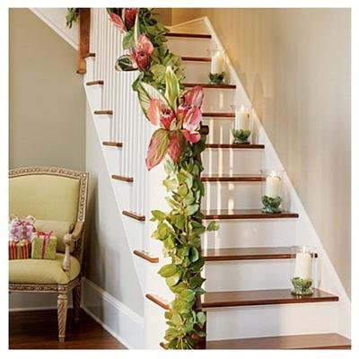 Las velas siempre son imprescindibles para esta ésta época. Casi siempre se ponen en la sala ya que es el lugar que procuramos decorar más, pues es allí donde se reúne la familia y llegan los invitados. Sin embargo, para este año también te invitamos a colocarlas en otros sitios de la casa, como las escaleras.
