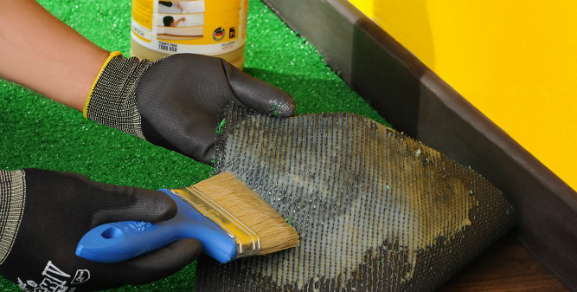 4. Una vez hayas esparcido el adhesivo debes esperar a que éste cambie de color, ejerce presión con el dedo y si no se adhiere a la piel, fija el piso.