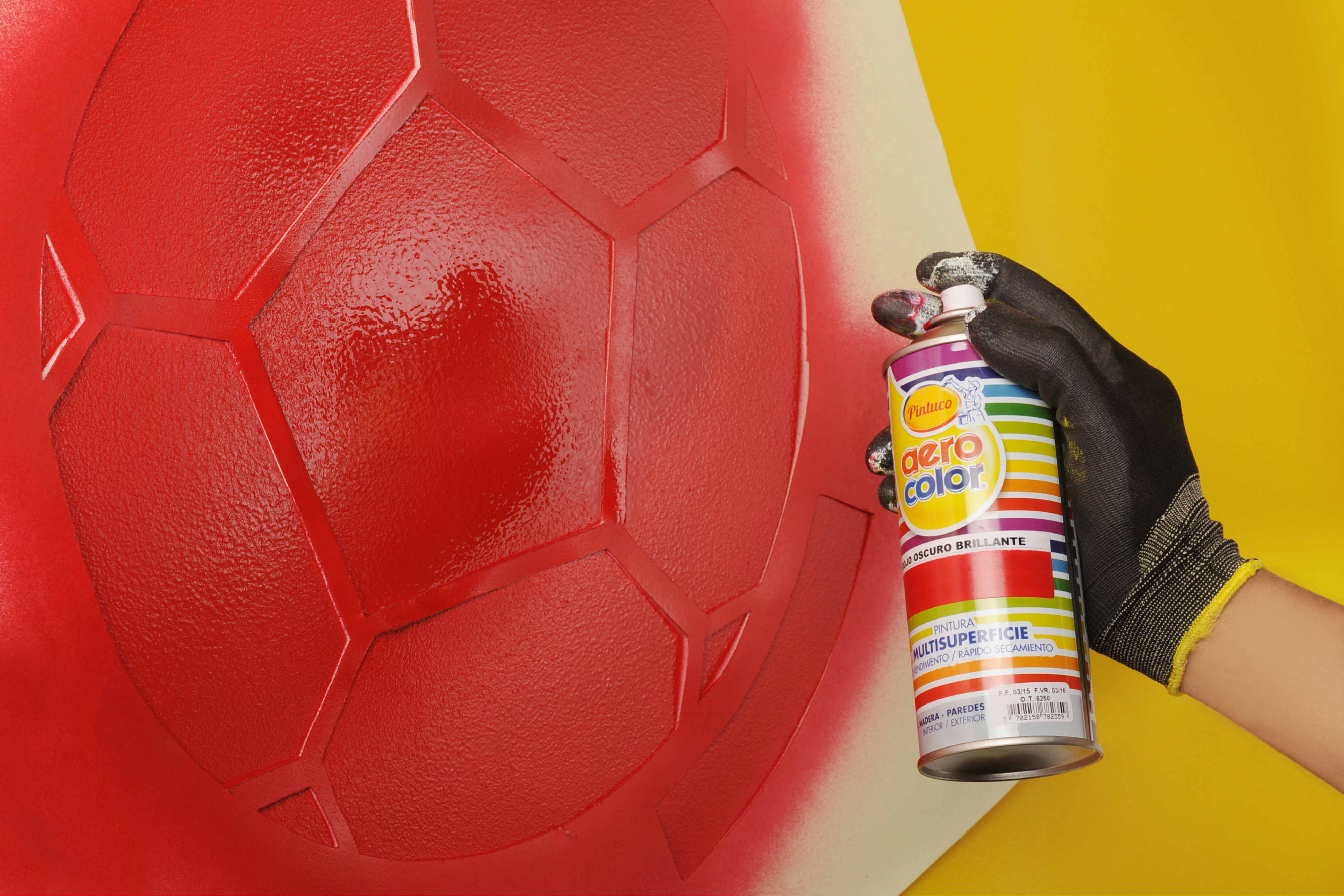 7. Rellena con las pinturas en aerosol según la distribución de los colores en el diseño.