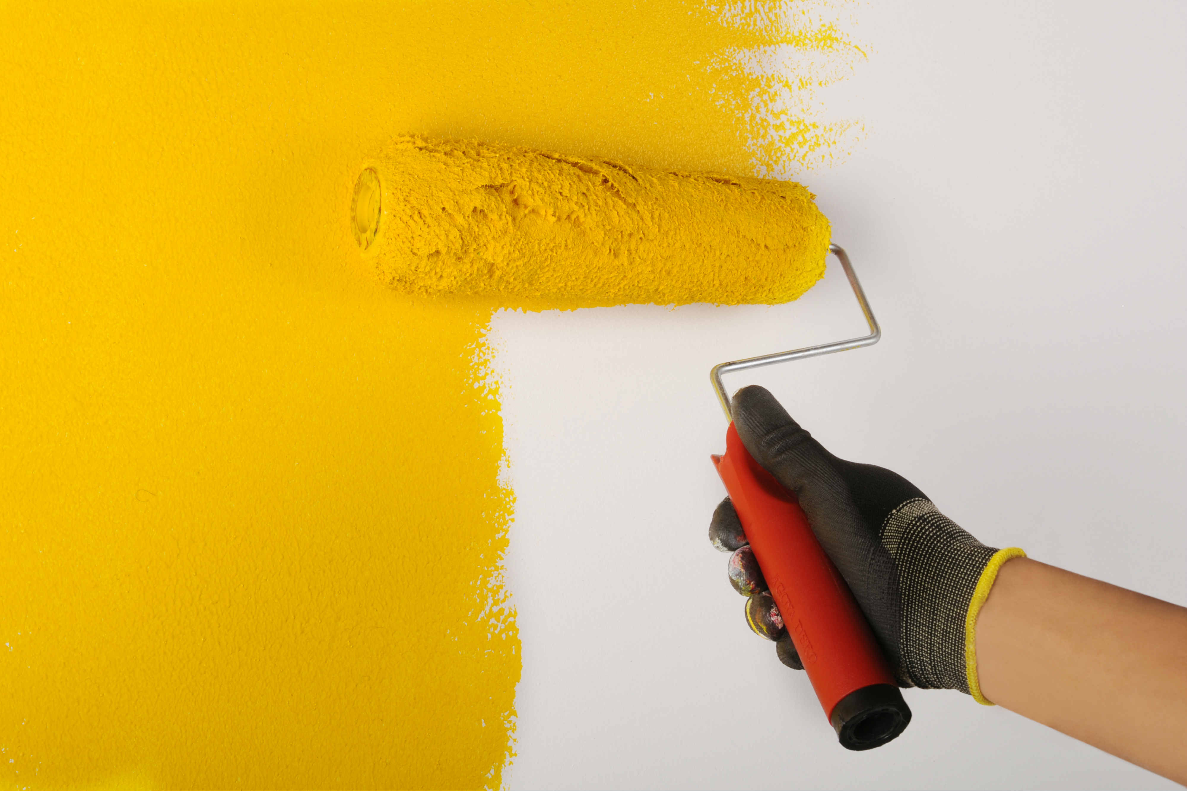 2. Con el rodillo pinta la pared, con el kölor Estándar Satín color amarillo. Deja secar, repite la acción hasta que quede parejo el color.