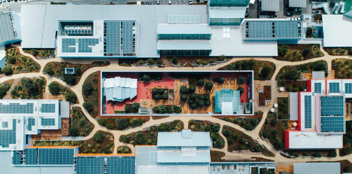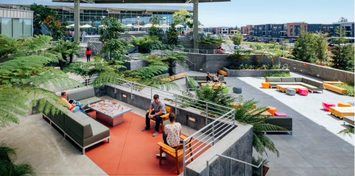 El proyecto incluye una terraza con jardines de 1,46 hectáreas con 200 árboles tipo secuoya, además de un sendero peatonal de 800 metros. La infraestructura está diseñada para reducir consumo de agua, energía y desechos. El sistema de aguas residuales recicla y filtra el agua y ahorrará aproximadamente 17 millones de galones de agua anualmente. El techo incluye 1,4 megavatios de paneles solares, que generarán cerca de 2 millones de kWh de electricidad al año. Facebook anunció que para 2020 todos sus edificios usarían 100 por ciento energía renovable.