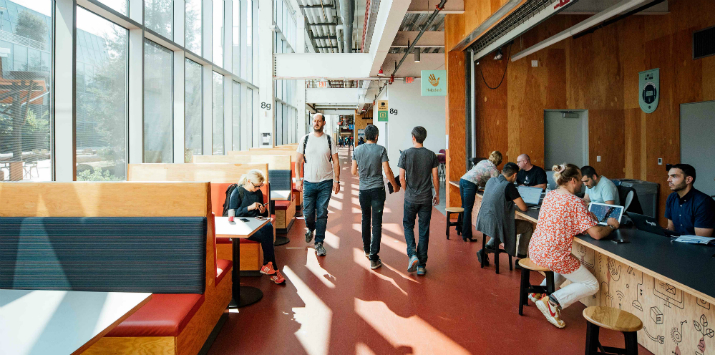 El edificio de 525,000 pies cuadrados fue creado por el conocido arquitecto Frank Gehry y se construyó en menos de 18 meses, su idea fue fomentar espacios placenteros para los aproximadamente 3000 empleados que trabajarán allí y de este modo ayudarlos a alcanzar todo su potencial. Pero además de ser un buen lugar para trabajar, también es un edificio altamente sostenible.