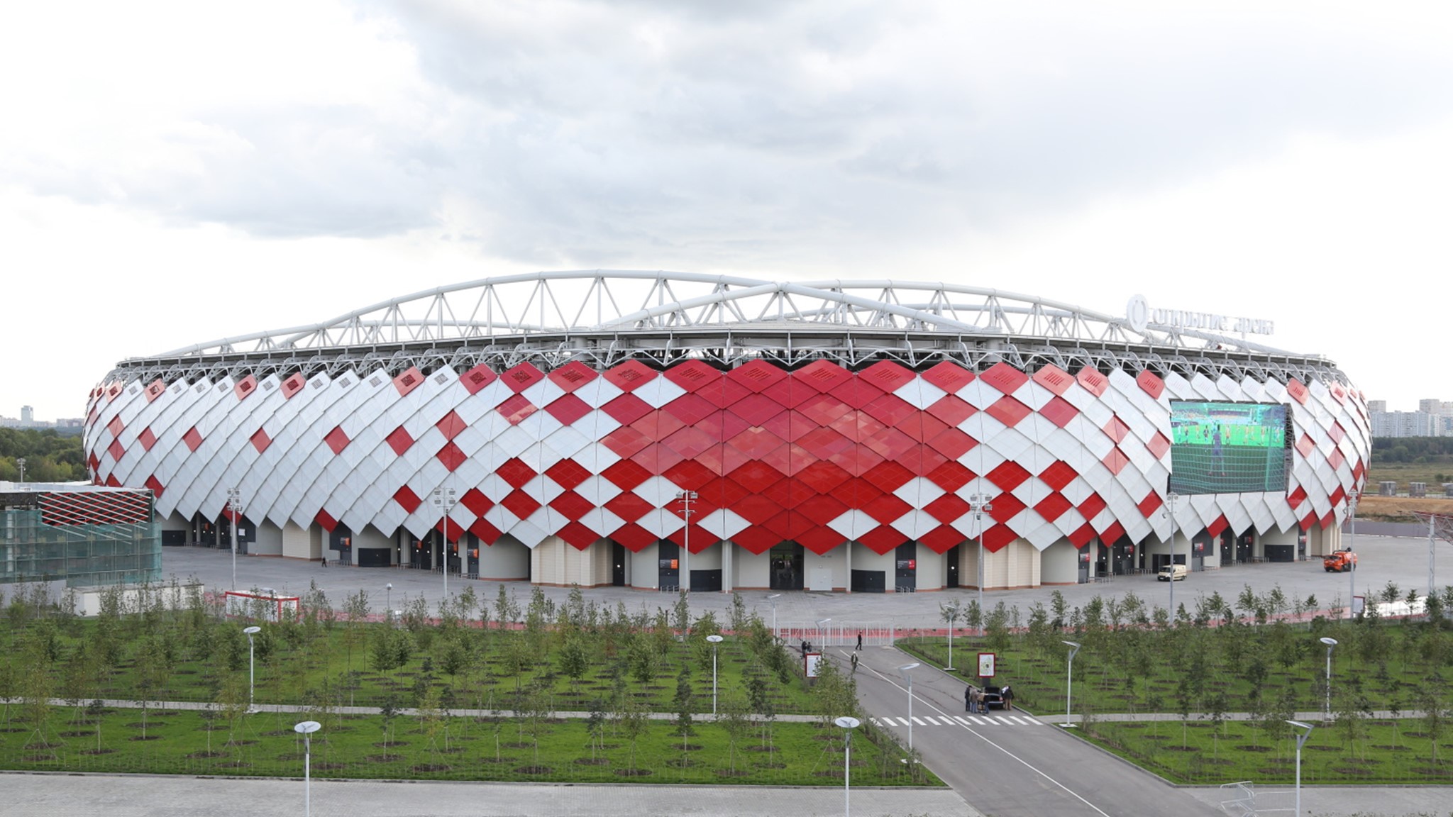 El aspecto de este sitio es un motivo de orgullo para la ciudad. Su fachada está recubierta de una cota de malla compuesta por pequeñas placas en forma de diamante que representan el logotipo del Spartak. La fachada puede cambiar de colorido, dependiendo del equipo que esté jugando en el estadio. En los partidos del Spartak, el estadio se cubre de rojo y blanco; cuando en él juega la selección nacional, su recubrimiento exterior adopta los colores de la bandera de Rusia.