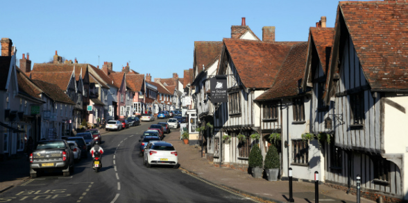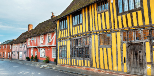 En el Reino Unido existe un pueblo llamado Lavenham, en Suffolk, ubicado al noroeste de Londres, a solo 70 kilómetros de la capital y no es un lugar común. Aunque sus calles son pequeñas, gran parte de sus casas tienen un entramado de madera y sus fachadas están pintadas con colores vivos, pero estas están torcidas y a simple vista pareciera que estuvieran apoyándose entre sí para no caerse.