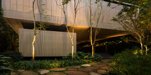Esta increíble mansión, según sus arquitectos, está construida en un terreno con muchas pendientes debido a la topografía del terreno y por ser una zona densa en vegetación, similar a la que se encuentra en la amazonia.