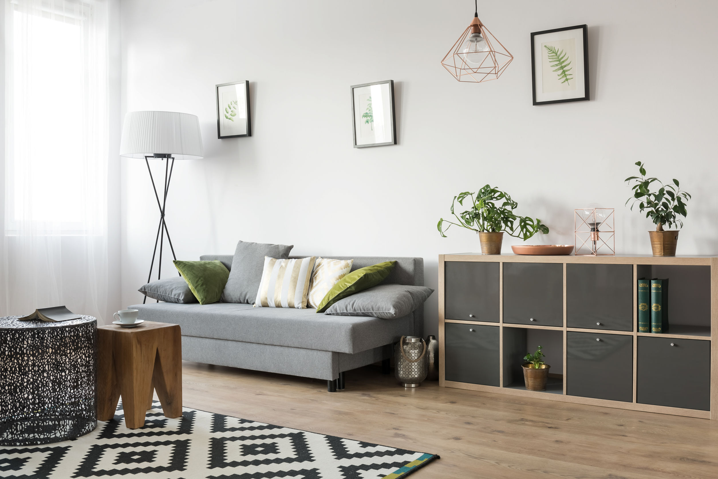 Esos muebles o accesorios que no te pueden faltar son: Una alfombra en el centro de tu sala, plantas que brinden naturalidad, cojines y mantas cálidas y por supuesto un buen sofá o poltrona que brinde el confort necesario.