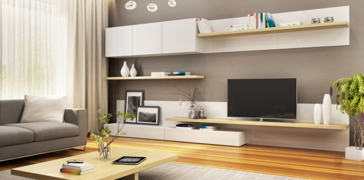 Una gran idea para aprovechar los espacios, es empotrando en las paredes la mayor cantidad de electrodomésticos posible. Esto con el fin de reducir mesas y estantes en los que usualmente se colocan televisor, DVD, equipos de sonido, entre otros.