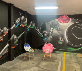 “Lo que hace uno es hablar con el cliente, él siempre trae un concepto, lo que hacemos es aplicarlo a la línea gráfica que nosotros tenemos, hacemos un feedback mutuamente hasta llegar a la concertación final y poder aplicarlo sea en muro interior o exterior, en un mueble, una prenda o lo que sea”, explicó Emilio Fonseca, uno de los artistas embajadores de Kare.