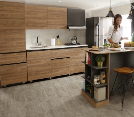 Por ello, en el mercado se encuentran disponibles cocinas listas para armar con diseños geométricos, texturas naturales, colores tierra y acabados que permiten fácil limpieza y mantenimiento.