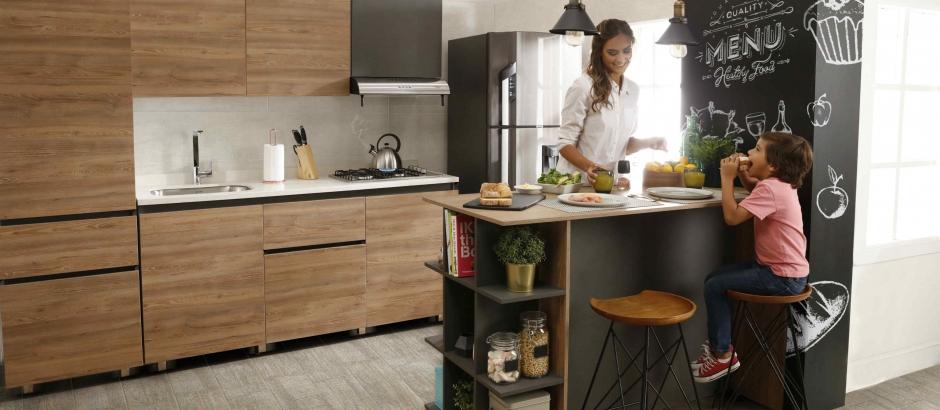 • Muebles complementarios como alacenas y barras, brindando alta capacidad de almacenamiento y espacios para compartir en familia.