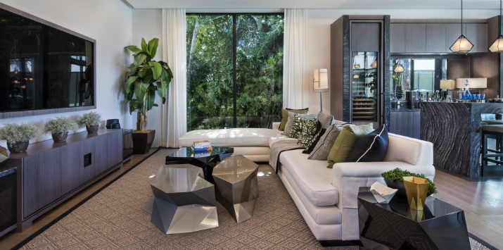 “Mi objetivo principal en el diseño de esta casa fue crear espacios bien iluminados y abiertos en la sala principal, comedor y en la sala familiar – y a la vez, mezclar el interior y exterior tropical”, expresó Kobi Karp, arquitecto del proyecto.